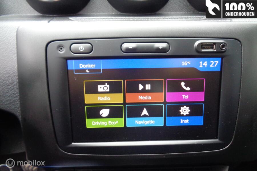 Een handige optie is de achteruitrijcamera. Achteruitrijden, inparkeren en manoeuvreren gaat gemakkelijker dan ooit. Kies de muziek waarvan u houdt, dankzij de DAB-radio klinkt het altijd geweldig. Intussen bedient u het audiosysteem en het navigatiesysteem met de knoppen op het stuur. Voor de lange ritten is de cruise control een verademing. Natuurlijk is er in deze auto airconditioning aanwezig. U bent in deze Dacia ook voorzien van lederen stuur, isofix-aansluiting, centrale deurvergrendeling met afstandsbediening, boordcomputer en lederen versnellingspook.